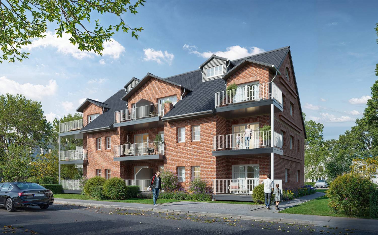Das Quartier ist nicht nur auf die Bedürfnisse der Gegenwart, sondern auch auf die Anforderungen der Zukunft ausgerichtet. Die Wohnungen sind bequem per Aufzug erreichbar, sodass ein unabhängiges Leben im Erdgeschoss und in den Obergeschossen bis ins hohe Alter möglich bleibt. Die südliche bzw. südwestliche Ausrichtung der Gebäude sorgt für maximales Tageslicht und auch die Außenanlagen sind harmonisch sowie praktikabel konzipiert.